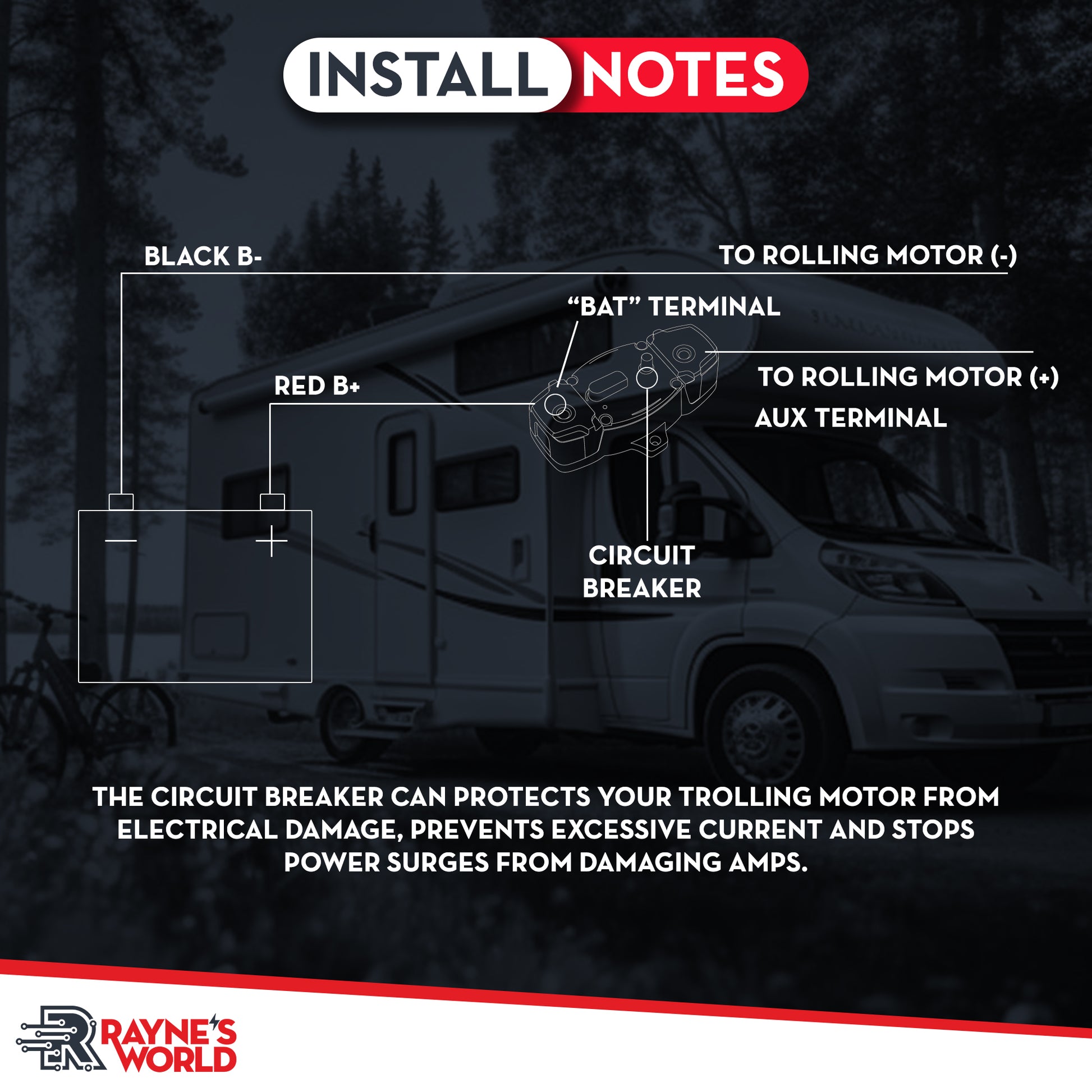 Example: AMPS = 1000 Watts / 12 Volts x 1.25 = 104.1 AMPS (Round up to 110 or 120 Amp)